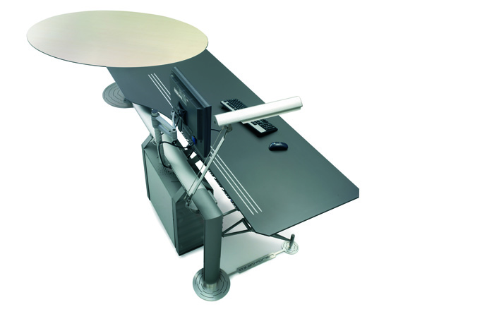 Work space as a goal. Renovatio offers innovative solutions in work space distribution and accessibility of the various equipment. Its technical structure, composed of a steel and aluminum frame, constitutes its visual identity and is the key element of the equipment. Its granite worktop creates a hard-wearing work surface. The design benefits from clean lines, while the structure is extremely hard-wearing but with light looks. Excellent ergonomic and functional features allow the integration of communication systems. The modular program has endless configuration options, with a simple quick-assembly method that allows easy integration of new accessories. Flexible and multi-functional. In short, a new concept of space: RENOVATIO.